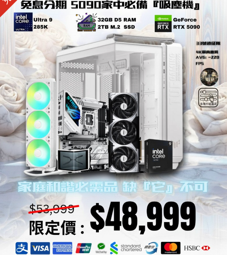 【家中必需品】5090 旗艦免息分期機王組合 285K|| 5090 || 32GB || 2TB